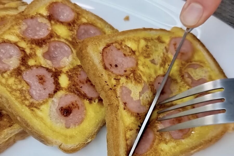 Šāda pagatavošanas metode padara parastu sviestmaizi par kaut ko radošu un daudz garšīgāku. Maize no ārpuses kļūst kraukšķīga, bet desiņas un siers olā paliek sulīgi. Turklāt šis ir lēts un vienkāršs veids, kā palutināt ģimeni brīvdienu rītos vai pat uztaisīt sātīgas vakariņas pēc garas darba dienas.
