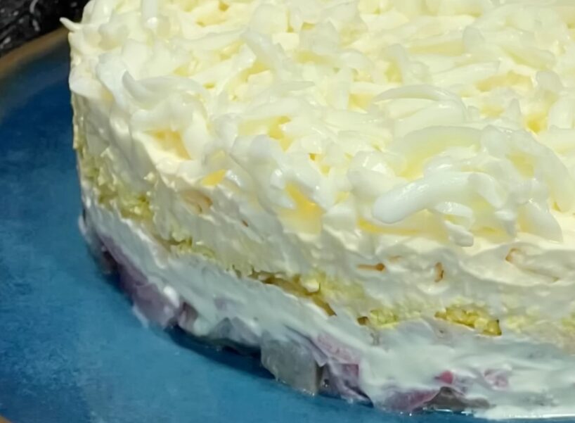 Maigi, kārtaini un svinīgi salāti, kas izskatās īpaši glīti un kļūst par skaistu akcentu uz Jaungada galda.