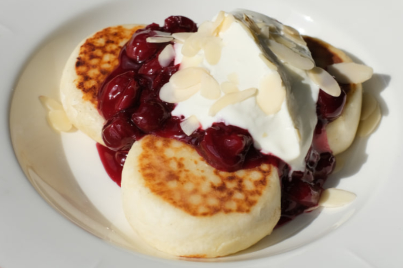 Rezultātā sanāk maigi, aromātiski un sātīgi plācenīši, kas garšo kā starp kaut ko starp pankūkām un siera kūku. Tos parasti pasniedz ar krējumu, ievārījumu, medu vai ogām, un tie ir iecienīti gan brokastīs, gan desertā. Latviski tos dažkārt sauc arī par biezpiena plācenīšiem vai biezpiena pankūciņām. Tos izcept nav viegli, ir jāiemācās.
