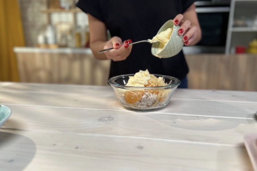 | Majonēze | 2 ēd. k. | Kalpo kā saistviela. (Variācija: Grieķu jogurts vai skābs krējums) |