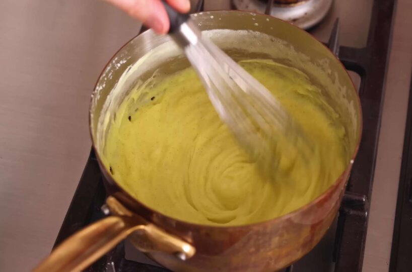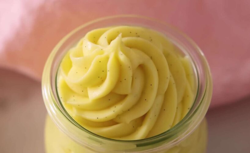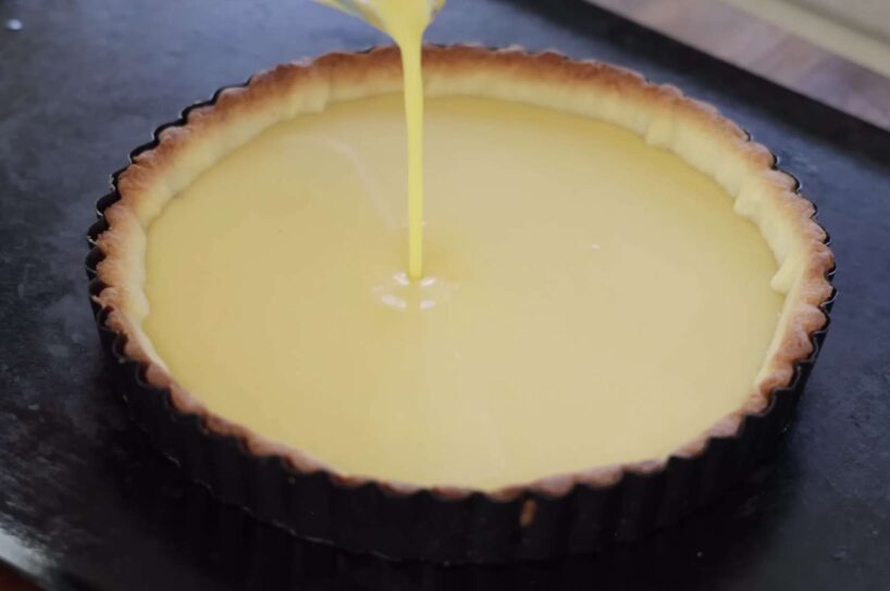 1. Vispirms pagatavo citronu krēmu. Izspied sulu no citrona. Sarīvē citrona miziņu. Katliņā ieber sarīvēto miziņu, pievieno izspiesto sulu, pēc tam pievieno cukuru, kukurūzas cieti un sakultu olu – visu sakuļ, tad liek vārīties uz ļoti lēnas uguns, līdz viss sabiezē. Pēc vārīšanas izkāš masu caur sieru, pārliek bļodā un pārklāj ar pārtikas plēvi.