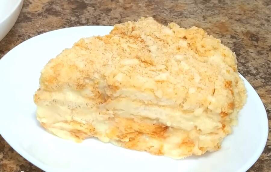 Galvenais noslēpums šeit ir pareizi pagatavots vārītais krēms un īstā “mīklas” aizstājēja izvēle, kas ļauj iztikt bez cepeškrāsns ieslēgšanas.