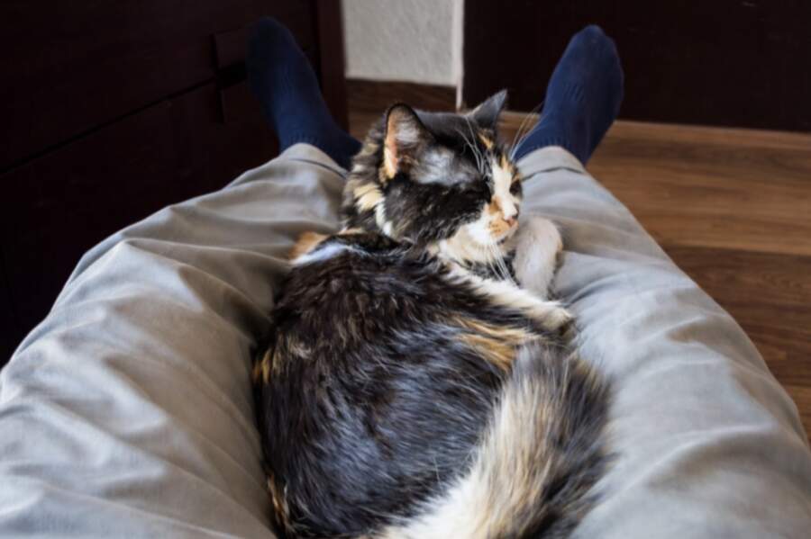 Mīlulis meklē kontaktu ar biedru, kuram pilnībā uzticas. Saimnieka smarža, pazīstamās kustības un viņa klātbūtne uz kaķi iedarbojas nomierinoši. Tomēr ne visiem dzīvniekiem patīk gulēt tieši uz krūtīm vai rokām – dažiem šāds kontakts šķiet pārāk ciešs un ierobežojošs. Vieta pie kājām šādos gadījumos kļūst par izcilu kompromisu: tā ļauj būt blakus un sajust tuvību, nezaudējot brīvības sajūtu.