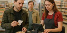 Māris uzmeta skatienu ekrānam, kurā rādīja pirkumu summu. Es stāvēju pie lielveikala kases, un cilvēki atskatījās. Kasieris nolaida acis, izlikdamies, ka nekas nenotiek