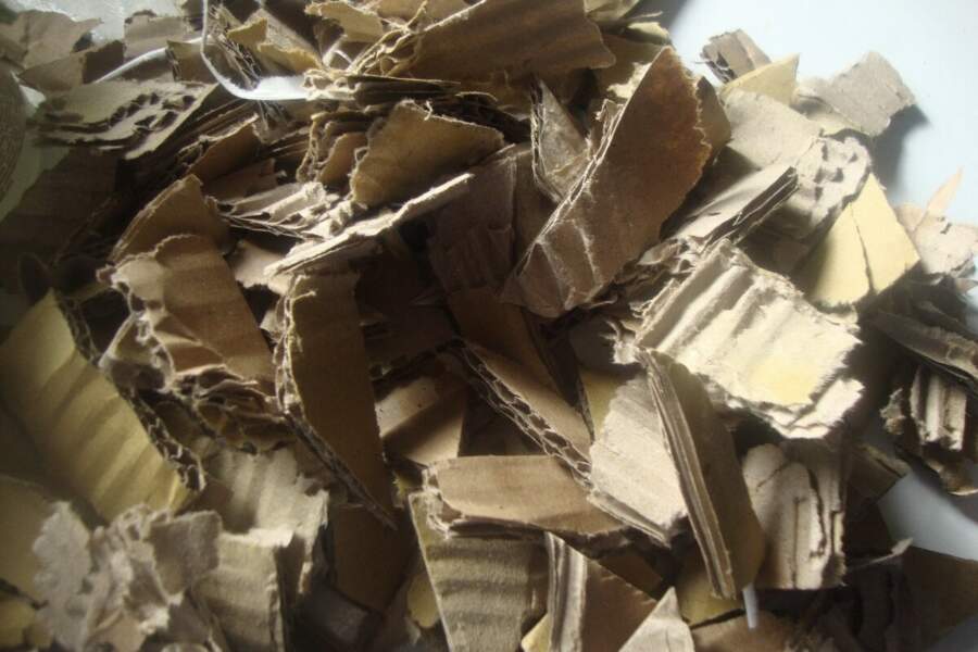 Pirms sākt darbu, kartona kastes ir jāsagatavo. Es parasti noņemu visas līmlentes, skavas un plastmasas uzlīmes, lai dārzā nepaliktu nekas lieks. Vislabāk izmantot vienkāršu, brūnu kartonu bez krāsainas drukas un lakotiem pārklājumiem.