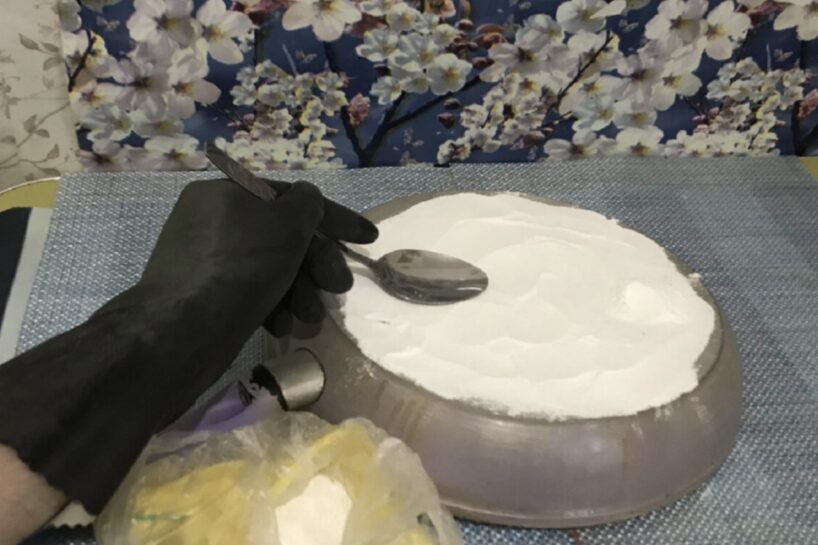 Pirmajam pastas pagatavošanas veidam būs nepieciešama kalcinētā soda. To vienmērīgi izklāj uz pannas. Pēc tam pievieno ūdeņraža peroksīdu un samaisa, līdz iegūst pastas konsistenci.