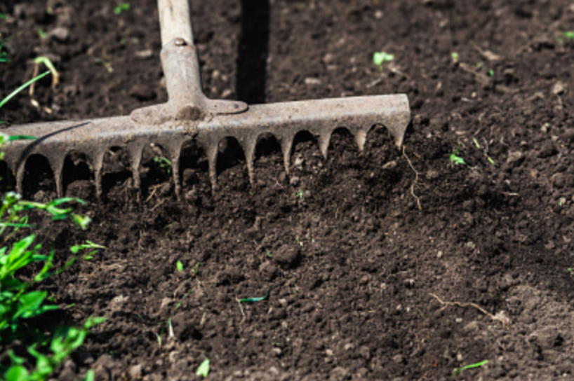 Iestrāde. Vieglītiņām pārvelciet ar grābekli vai kapli, lai maisījums būtu nedaudz zem augsnes virskārtas. Dziļi rakt nevajag — ļaujiet procesiem notikt dabiski.