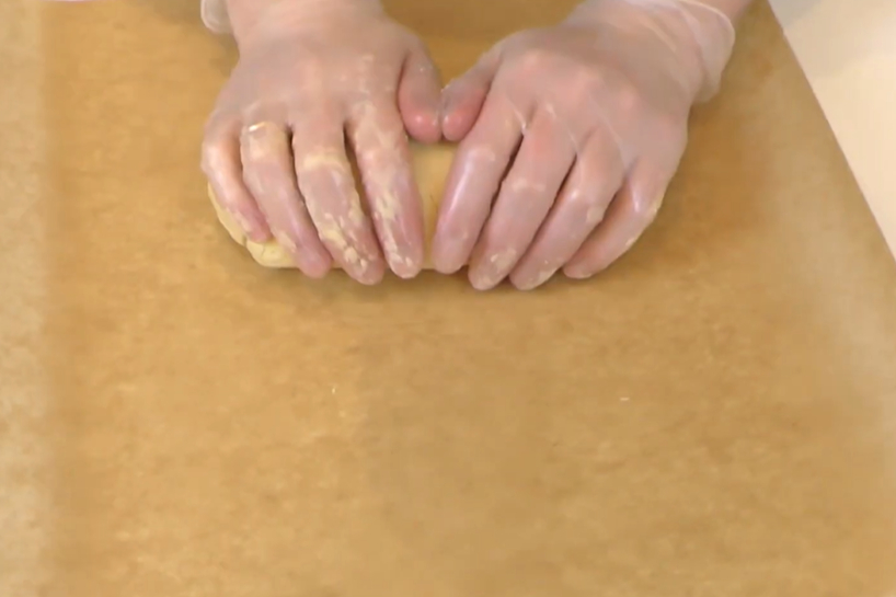 Kad mīkla gatava, to jāsamīca vienā kārtīgā bumbā. Šāda mīkla sanāk mīksta un patīkama. Tagad man vajadzēs cepamo papīru.