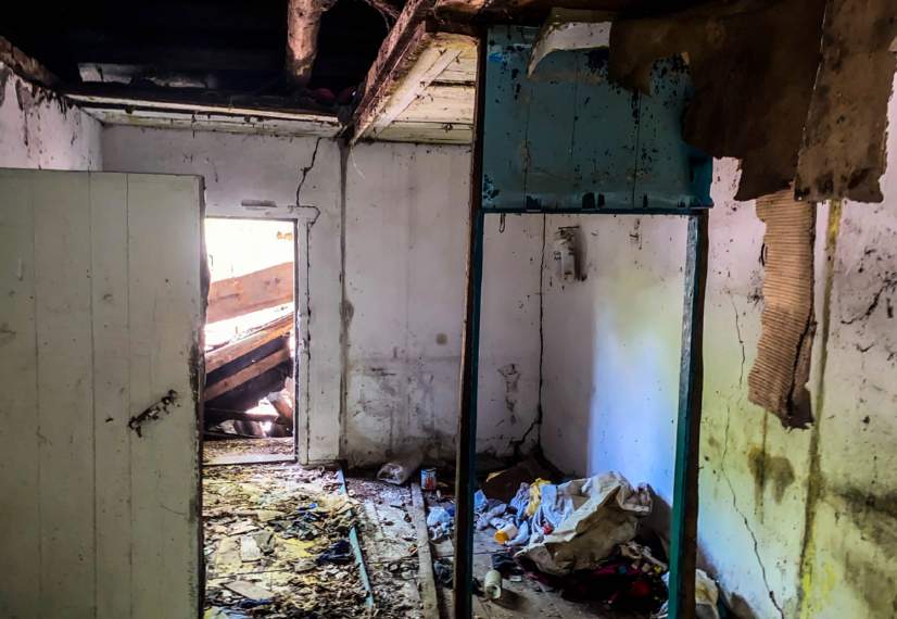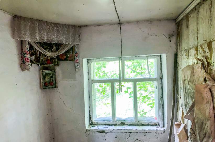 Nav nekāds noslēpums, ka pamestās mājās pirmām kārtām tiek izpostītas tieši krāsnis. Cilvēki no tām izņem visas metāla daļas – durtiņas, plīts virsmas un šīberus, jo tie parasti ir smagi un tos var nodot metāllūžņos. Tajā mazajā istabiņā, kur atradās krāsns, bija tikai viens vienīgs logs, kas no ārpuses bija aiznaglots ar dēļiem. Pie loga vēl bija saglabājies vecs tillā aizkars, bet pie sienas stāvēja vienkāršs koka sols.
