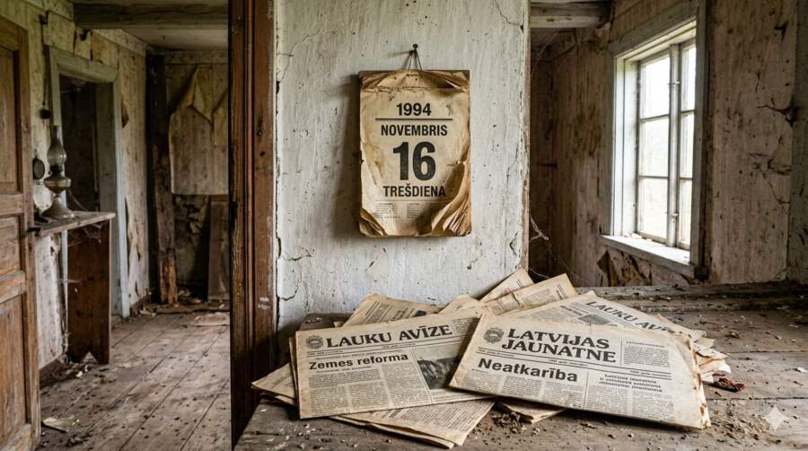 Uz grīdas, netālu no loga, mētājās vecas avīzes “Lauku Avīze” un “Latvijas Jaunatne”. To lapas bija kļuvušas trauslas kā rudenī nokritušas lapas, un pie mazākā pieskāriena tās draudēja sadrupt pīšļos. Raksti tajās vēstīja par laikiem, kad Latvija tikko bija atguvusi neatkarību, par zemes reformām un cerībām uz labāku nākotni.