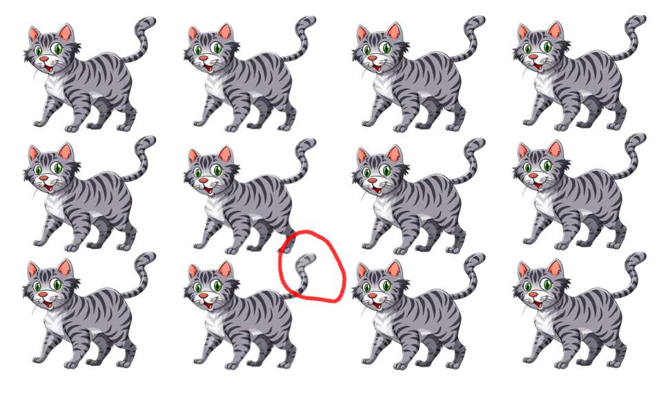 Domājam, ka jā. Bet tagad iedomājieties, ka jūsu priekšā ir 12 kaķi, un visi viņi izskatās vienādi, izņemot vienu. Vienam ir kāda īpaša detaļa, kas to atšķir no pārējiem. Taču, lai to pamanītu, nāksies izmantot visu savu uzmanību.