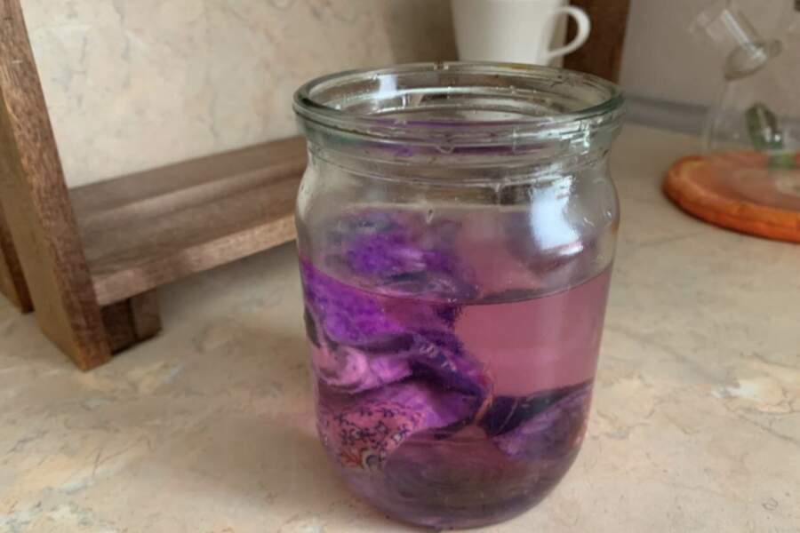 Sagatavoto saišķīti ievieto burkā ar siltu ūdeni. Daudzi dārzkopības entuziasti ūdenim pievieno nedaudz kālija permanganāta (zilo graudiņu), lai šķīdums kļūtu viegli sārts. Tas palīdz vienlaicīgi veikt divus darbus: sēklas tiek gan dāsni padzirdītas, gan dezinficētas no iespējamām kaitēm, kas varētu ietekmēt jaunos stādus. Šādā stāvoklī sēklas siltā vietā atstāj uz pilnu diennakti.
