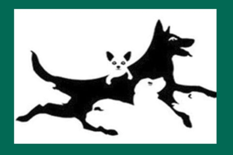 Lielākā daļa cilvēku no pirmā acu uzmetiena attēlā redz četrus suņus. Ja jūs redzat četrus suņus, jūsu garīgais vecums ir no 20 līdz 30 gadiem. Jūs esat mākslinieciski un literāri noskaņoti, skatāties uz lietām no jauna skatu punkta — un tas vienmēr ir izglītojoši — un jums ir nestandarta domāšana.