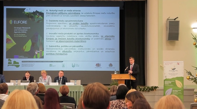 Arī mežzinātnes jomā tika izstrādāti nozīmīgi risinājumi. Tie ļaus Latvijai virzīties uz priekšu resursu ilgtspējīgas apsaimniekošanas jautājumos un pat radīt jaunus materiālus, kas spēj aizstāt fosilos, naftas bāzes produktus. Latvijas Valsts koksnes ķīmijas institūta direktora vietnieks Uģis Cābulis uzsvēra, ka ir izstrādāti reāli prototipi un tehnoloģijas, kuras tagad atliek mērogot un kuras industrija varētu nekavējoties sākt ražot.