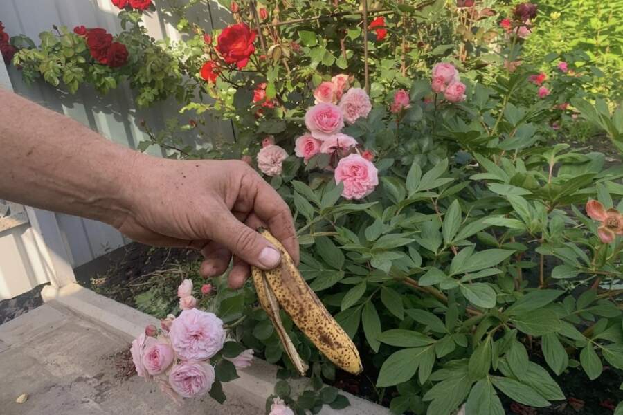 Pavasarī, kad rožu krūmi sāk mosties, parasts un pārgatavojies banāns var kļūt par vērtīgu papildmēslojumu bagātīgai ziedēšanai vasarā.