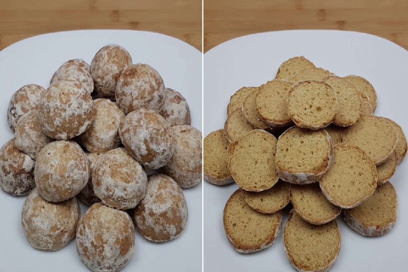 Lai torte veidotos stingra un skaista, vispirms sagatavo piparkūkas. Tās parasti ir nedaudz biezākas un mīkstas, tāpēc tās ērti pārgriezt uz plānākiem gabaliņiem. Parasti katru piparkūku pārgriež vairākās šķēlēs, lai tās vieglāk kārtotos un labāk uzsūktu krēmu. Dažus stingrākus gabaliņus var atstāt pēdējam slānim, jo tie palīdz tortei saglabāt formu. Šis solis notiek pavisam vienkārši un mierīgi, un tas neprasa īpašas prasmes, tikai pacietību un vienmērīgu kustību, lai šķēles būtu vienādas.