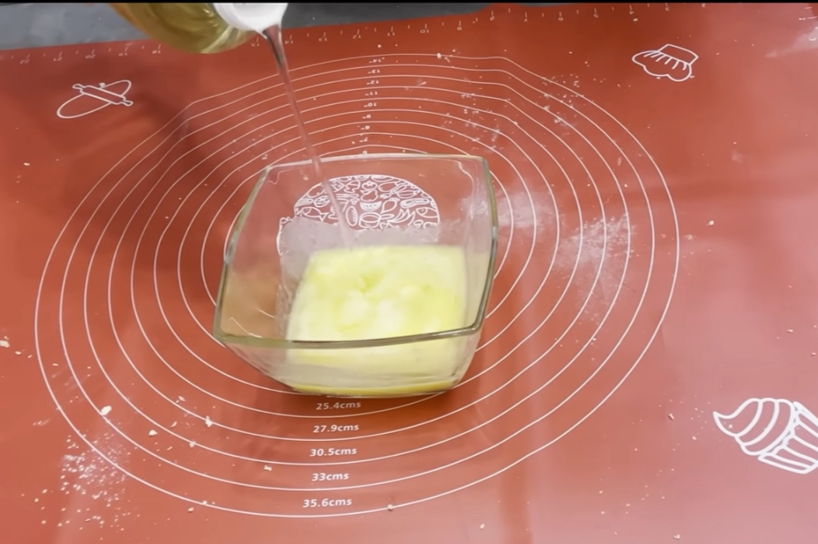 Tāpat mums būs vajadzīgs sviests, to vajag izkausēt mikroviļņu krāsnī. Es jau to izkausēju un pievienoju nedaudz augu eļļas. Attiecība – viens pret divi. Tagad visu samaisu, un eļļas maisījums ir gatavs.