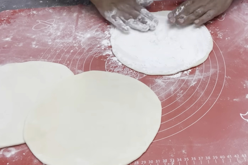 Dažkārt var rullēt trīs bumbiņas vienlaikus. Ja jums ir pieredze ar plānu mīklas rullēšanu, to var izdarīt ātri un vienkārši — mīklu var izrullēt ļoti plāni.