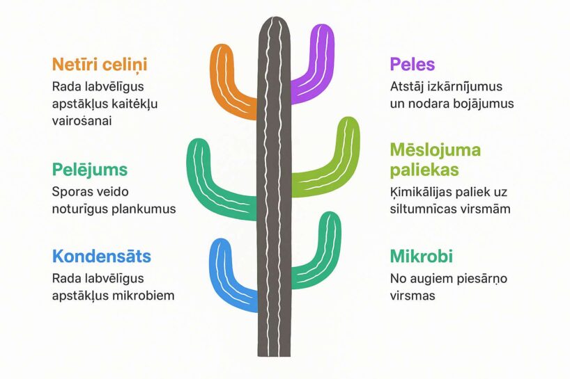 Vēl viena nianse, moments: neizmantojiet lupatas ar sadzīves ķīmijas paliekām, citādi nebūs nekādas jēgas — ķīmija “saēdīs” aizsargslāni un mikroorganismus.