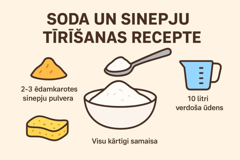 Ar ko to visu labāk nomazgāt? Īpašā ķīmija bieži kairina un ir kaitīga augsnei, it īpaši, ja paliek uz virsmas. Soda — droša, nekodina rokas un tīrīšana kļūst viegla.