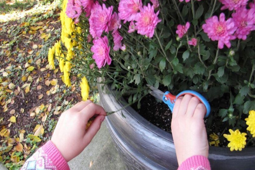 Pēteris noliek grābekli: