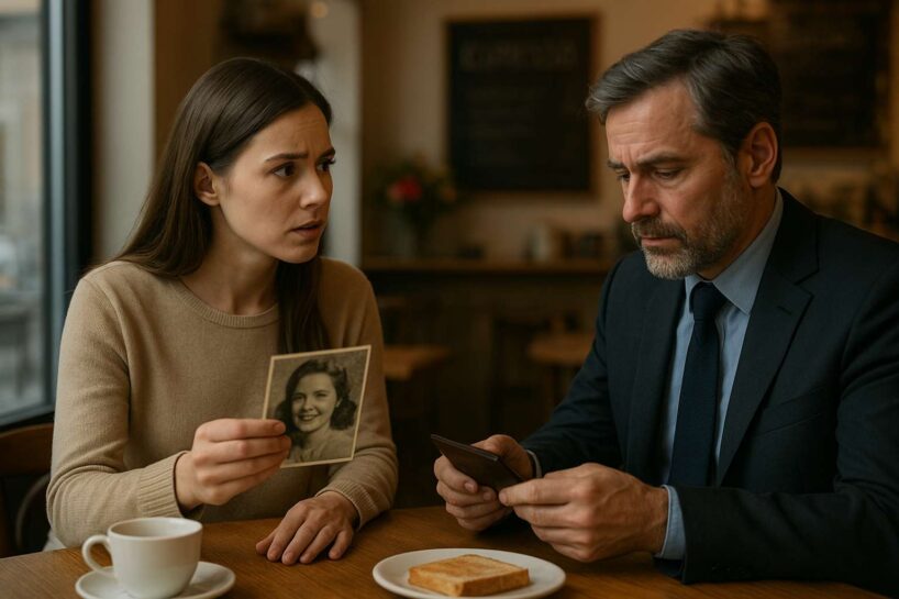 Kamēr viņš dzēra kafiju, viņš uz brīdi atvēra maku — iespējams, lai atrastu karti vai čeku. Un tieši tad Līgas uzmanību piesaistīja kaut kas. Fotogrāfija. Viņa apstājās, paplāte gandrīz uz ceļa uz nākamo galdiņu. Attēls bija izbalējis, ar ielocītiem stūriem, acīmredzami vecs, bet neapšaubāmi pazīstams. Tā bija viņas māte.