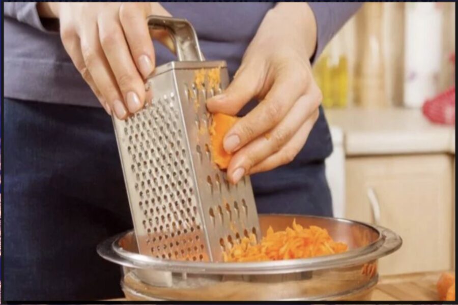 Noslēpums ir banāls, taču tas vienmēr strādā. Paņemiet dārzeni, pārgrieziet to uz pusēm un pielieciet to ar plakano pusi pie rīves malas. Pirksti būs drošībā — un tā var sarīvēt kaut trīs kilogramus burkānu.