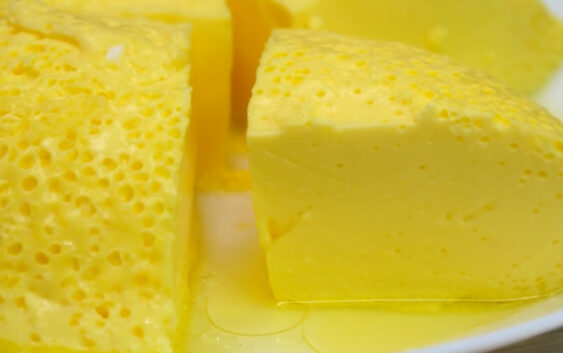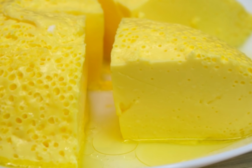 Iegūto olu masu ielejam stikla bļodā un pievienojam nelielu gabaliņu sviesta.