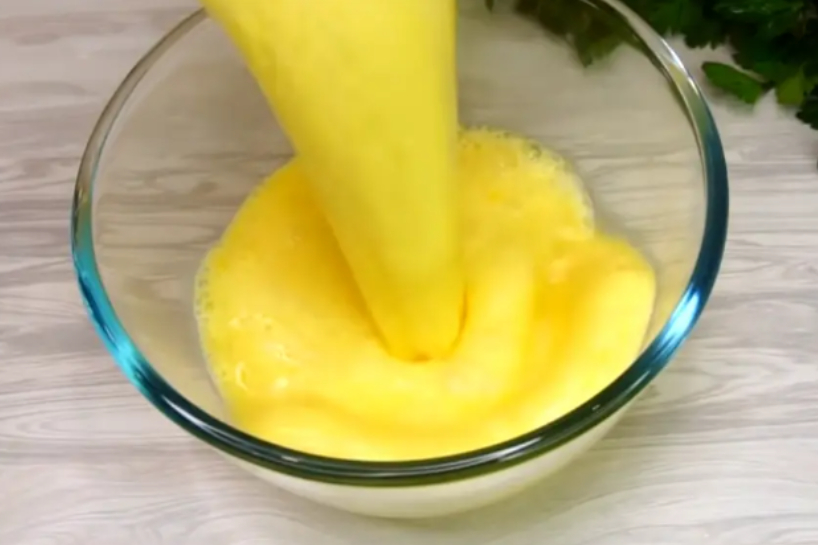 Olas iesitam bļodā, pievienojam šķipsniņu sāls, pienu un viegli, ne pārāk spēcīgi, saputojam ar parastu putojamo slotiņu, līdz masa kļūst viendabīga.