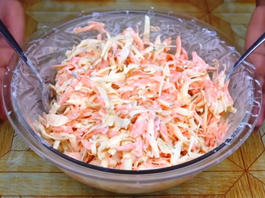 Sātīgie kāpostu un olu salāti kā bērnībā: vienkāršs paņēmiens, kā panākt īsto ēdnīcas garšu