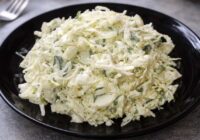 Svaigu kāpostu un gurķu salāti ar krēmīgu sinepju mērci ir vienkāršs veids, kā papildināt ikdienas pusdienas bez lieka smaguma.