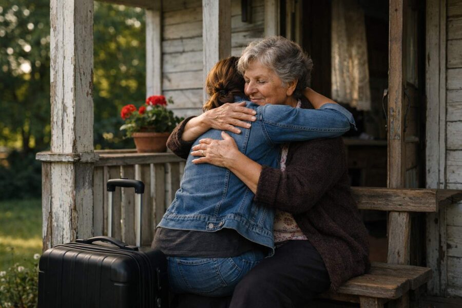 Viņa stāvēja uz viņu dzimtas mājas vecā lieveņa.