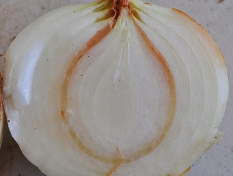 Sīpola pamatnes apskate: Pārbaudiet sīpola apakšdaļu. Ja tajā redzams pelējums vai mitrums, visticamāk, infekcija jau ir skārusi arī iekšpusi.