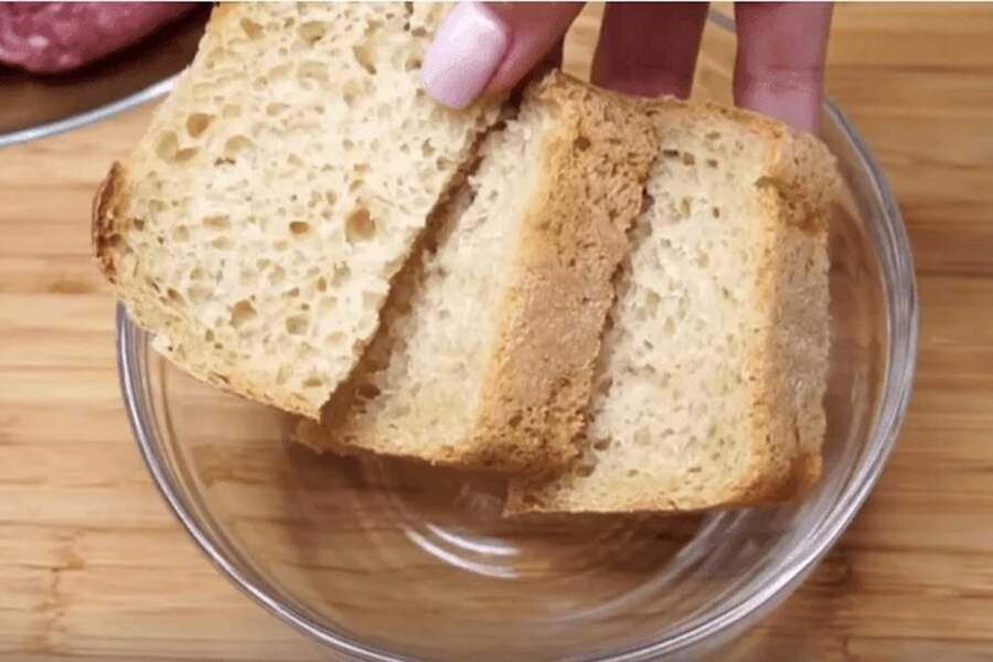 Sīpolu un ķiplokus es parasti sasmalcinu blenderī līdz putras konsistencei. Ja blendera nav, tos var arī sarīvēt vai ļoti smalki sakapāt. Kad maize ir kļuvusi mīksta, es to kārtīgi nospiežu ar rokām, lai nebūtu lieka ūdens. Visas šīs sastāvdaļas es lieku lielā bļodā kopā ar malto gaļu.