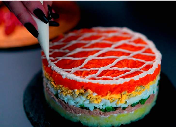 Skaisti salāti Jaunajam gadam — šis kārtainais mākslas darbs būs īsts šedevrs uz jūsu galda