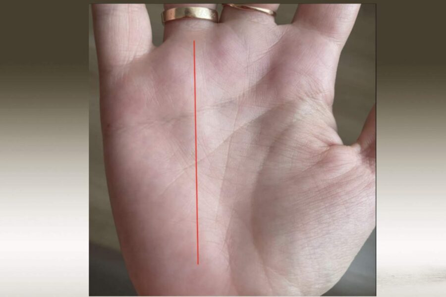 Kur meklēt: Vertikāla līnija, kas stiepjas no plaukstas pamatnes zeltneša virzienā. Bieži vien tās nav vispār vai ir redzams tikai īss posms.
