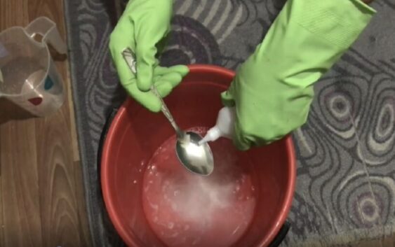 Un vienu ēdamkaroti amonjaka. Ar amonjaku jāstrādā uzmanīgi – telpai jābūt labi vēdinātai, un jums jābūt maskai.