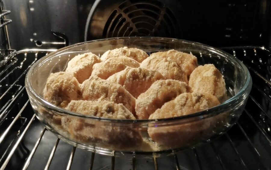 Kad kotletes gatavas, tās izskatās izcili. Virspuse ir kraukšķīga un brūna, bet iekšpuse paliek mīksta un balta. Patiesībā, kad vienreiz pamēģina šo cepeškrāsns variantu, stāvēt pie plīts un šķiesties ar eļļu vairs nemaz negribas.