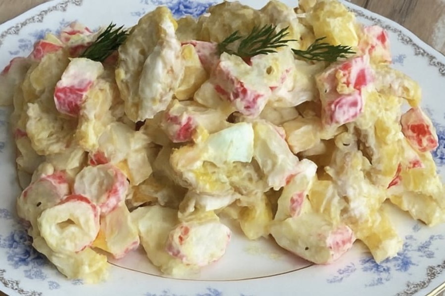 Šī krābju nūjiņu salātu versija mūsu mājās tagad top atkal un atkal. Vienkārša recepte, kas patīkami pārsteidz ar savu neparasto garšu.