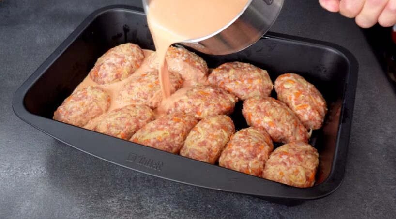 Tagad iesitiet vienu olu un vēlreiz labi samaisiet, līdz masa ir gluda. Ola darbojas kā ideāla saistviela. Tā droši satur kopā malto gaļu, rīsus un dārzeņus, nodrošinot, ka mūsu kotletes cepšanas laikā turas kopā un saglabā savu perfekto formu. No maisījuma izveidojiet glītas kotletes un lieciet tās uz cepšanas paplātes. Mērcei atsevišķā bļodā sajauciet 2-3 ēdamkarotes tomātu pastas un 150 gramus skābā krējuma.
