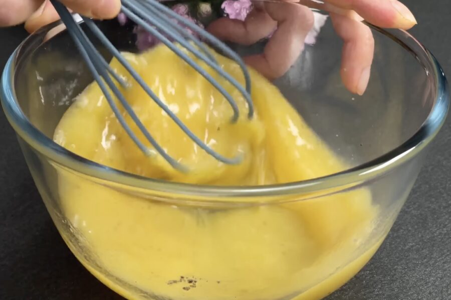 Kamēr dārzeņi pannā “draudzējas”, bļodiņā sakuļu četras olas. Pievienoju tām nedaudz sāls un obligāti — maltus melnos piparus. Ja dārzā vai uz palodzes ir lociņi, es tos sagriežu un iemaisu tieši olu masā. Lociņi dod svaigumu un liek visam ēdienam izskatīties pēc pavasara, pat ja ārā ir ziema.