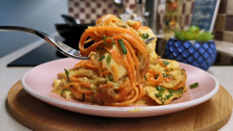 Var izmantot gan smalkas kaltētas garšvielu maisījuma piedevas, gan vienkārši pievienot šķipsnu karija vai garšaugu miksi. Mērce sanāk maiga un viegla, un tā skaisti pārklāj gan dārzeņus, gan vistu.