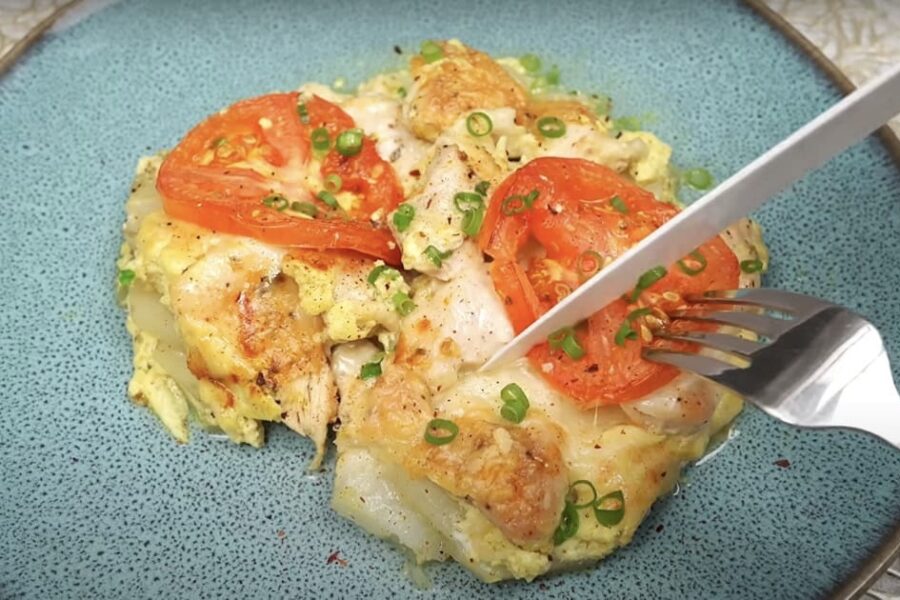 Sātīga un vienkārša vakariņu recepte, kur viss gatavojas vienā traukā. Vistas krūtiņa krēmīgā olu un saldā krējuma mērcē ar kartupeļiem un sieru ir ideāls risinājums steidzīgiem darba dienu vakariem.
