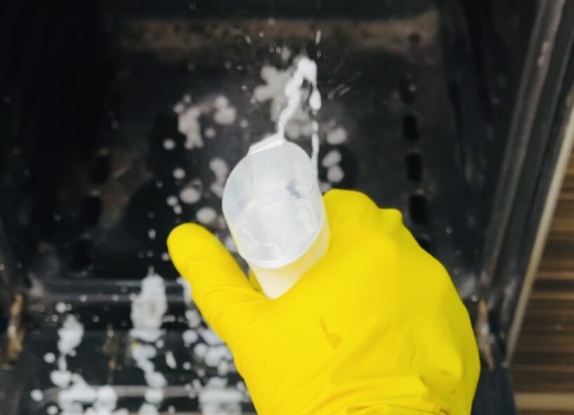 Atstāj vismaz uz 30–40 minūtēm, bet ja krāsns ir ļoti netīra – pat uz stundu. Šajā laikā soda un citronskābe mīkstina piedegušos taukus, un tie paši atdalās no virsmas.