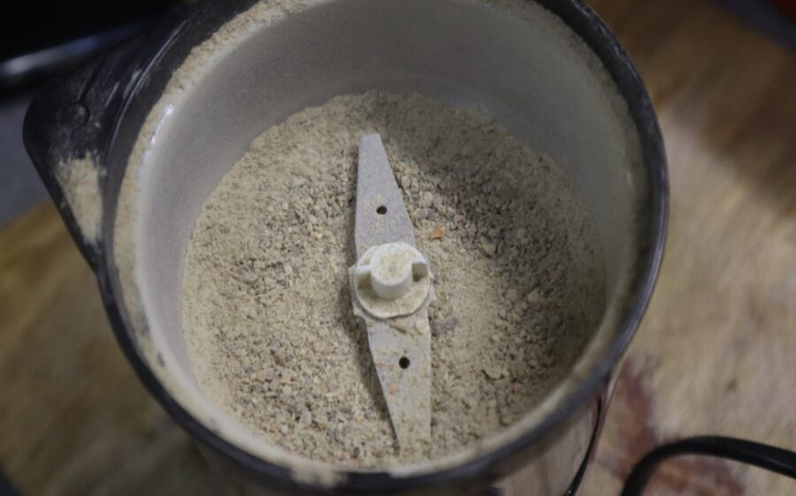 Kad izejviela ir pilnībā izžuvusi, tā parasti kļūst tumša un trausla. Tad nāk talkā kafijas dzirnaviņas – mizas sasmalcina smalkā pulverī. Šādu maisījumu ir ļoti ērti uzglabāt sausās stikla burkās, un nav jāsatraucas par to, ka mizas būtu jānodala; tās var glabāt kopā. Pavasarī, kad sākas dārza darbu sezona, krājumi jau būs gatavi lietošanai.