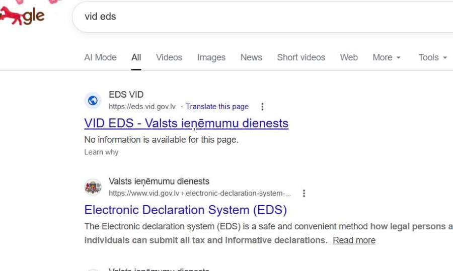“Okei, šitie krāpnieki reāli viltīgi. Tu Google ieraksti VID eds un pirmā saite, kas tev parādās, ir sponsorētās saites, kas it kā ved uz VID eds.