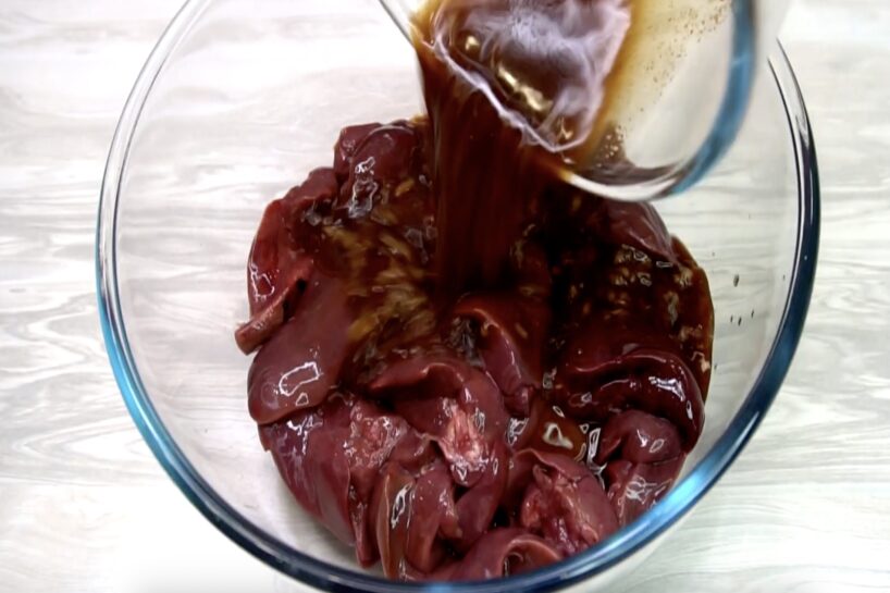 Vispirms sagatavo aknas: tās noskalo, nosusina un sagriež vienādos, nelielos gabaliņos. Tad pagatavo marinādi — bļodā sajauc sojas mērci, citronu sulu, medu, saspiestu ķiploku, melnos piparus un papriku. Aknu gabaliņus ieliek šajā maisījumā un ļauj tiem ievilkties vismaz 30 minūtes, bet vislabāk 2–3 stundas. Marinēšana piešķir gan maigu garšu, gan padara aknas īpaši sulīgas.