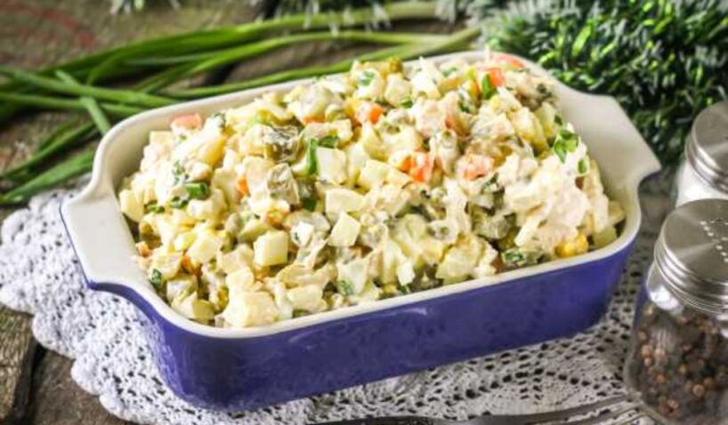 Pēdējos gados klasisko desu arvien vairāk aizstāj vistas fileja — vieglāka, veselīgāka un maigāka alternatīva, kas padara salātus mazāk treknus, bet ne mazāk gardus.