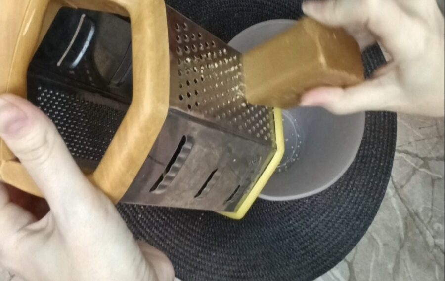 Šķīduma pagatavošana: Nelielu daudzumu ziepju sarīvē uz smalkas rīves (aptuveni vienu ēdamkaroti) un izšķīdina puslitrā silta ūdens. Ar sūkli sakuļ šķīdumu, līdz izveidojas biezas, stingras putas. Tieši putas ir galvenais instruments.