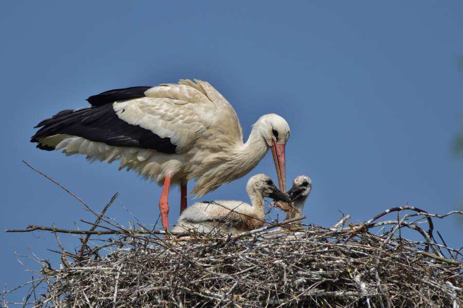 Ligzda bija milzīga, gadu gaitā krāta, zaraina un smaga – tā izskatījās pēc nelielas žagaru salas, kas pacelta augstu virs zemes. Jānis katru dienu novēroja viņus pa savas virtuves logu. Viņš no galvas zināja viņu dzīves ritmu: svinīgo atlidošanu aprīļa vidū, trokšņainās kāzu dejas ar knābju klabināšanu, olu dēšanu un pacietīgo perēšanu. Pēc tam sekoja mazuļu parādīšanās – sākumā tie bija mazi, pūkaini kamoliņi, kas vēlāk pārvērtās neveiklos pusaudžos, kuri mēģināja nedroši nostāties uz pašas ligzdas malas.